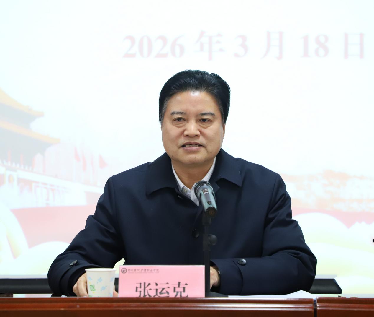 3月18日,我校在高新校区召开2026年全面从严治党工作会议。学校党委书记张运克,副校长、新密校区管委会主任崔明辰,党委副书记、纪委书记蒋春梅出席会议,全体纪委委员,各部门负责人,各党总支、直属党支部书记,党员代表参加会议。会议由学校党委副书记、副校长杨晓燕主持。
