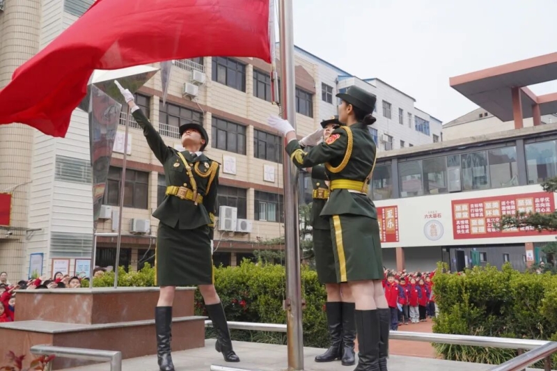 升旗仪式上,八一连队员迈着铿锵有力的步伐,护卫五星红旗走向升旗台。队员们身姿挺拔、队列严整、精神昂扬,充分展现出过硬的作风素养与良好的精神风貌,赢得在场师生一致称赞。伴随着雄壮的《义勇军进行曲》,五星红旗冉冉升起,全体师生肃立注目,爱国情怀在校园激荡。
