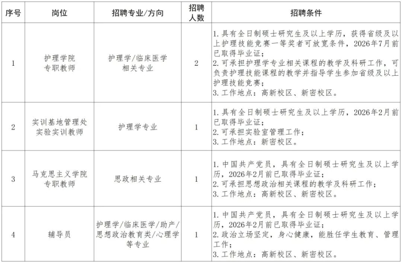 三、招聘岗位及专业要求