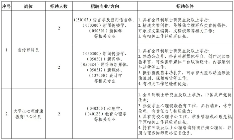 2.专职教师岗、行政岗、辅导员岗将依据个人职称、学历等情况,按照学校统一薪资标准执行。