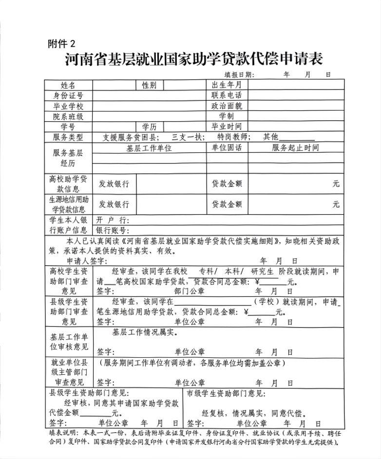 全日制应届毕业的专科生到我省艰苦边远地区基层单位就业、服务期在3 年以上(含3 年)、服务期考核合格的,其在校学习期间获得的国家助学贷款(含高校国家助学贷款和生源地信用助学贷款)的本金由财政实行代偿。“艰苦边远地区”范围是我省原国家连片特困地区重点县、原国家扶贫开发重点县和原省定扶贫开发工作重点县(详见附件1),其中,“农村特岗教师”和“大学生村干部”服务艰苦边远地区的范围为全省所有省辖市、济源示范区和航空港区。