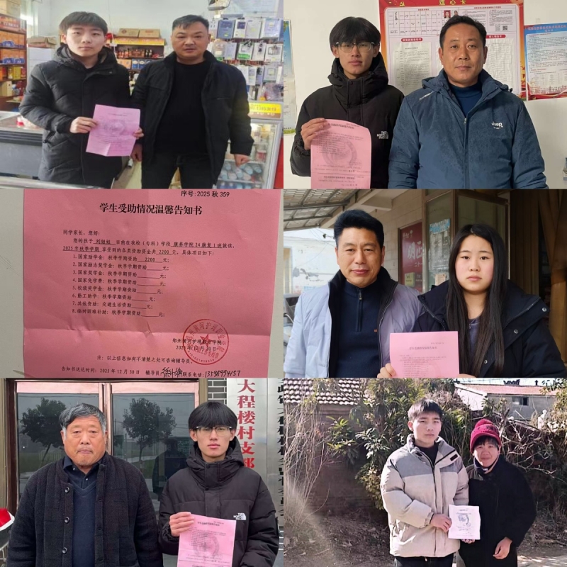 为深入贯彻落实学校资助政策,确保资助工作公开透明、精准到位,同时让受资助学生切实感受到班级的关怀与支持,我院于2026年1月组织开展了《温馨告知书》发放活动。主要面向2025年秋季学期国家奖学金、国家励志奖学金、国家助学金、学校奖学金等受助学生及其家长全面推送、发放告知书,确保政策传达到位、信息知晓全覆盖。