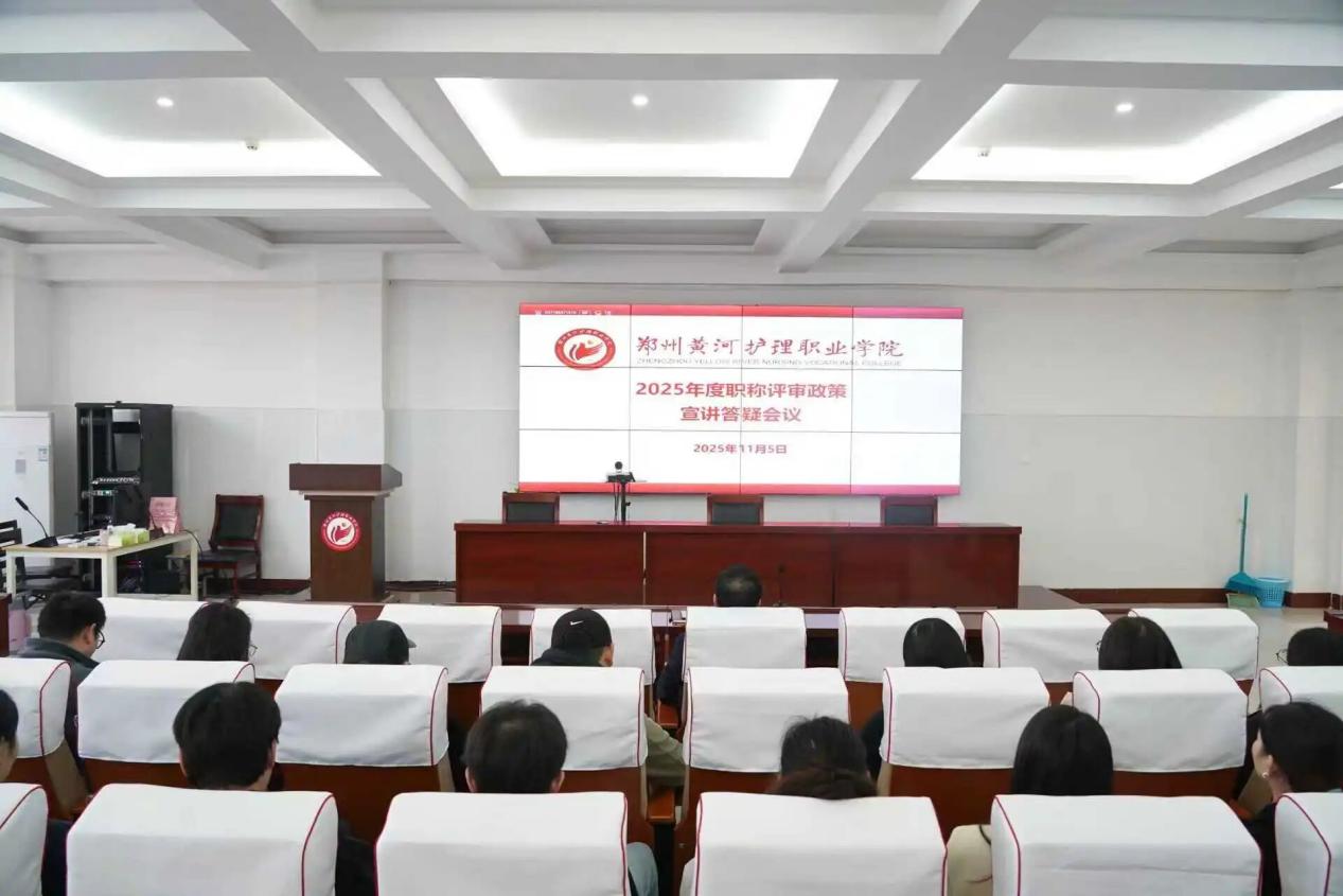 会议围绕《郑州黄河护理职业学院高等学校教师(实验人员)中、高级专业技术职务任职资格申报、评审条件(试行)》(郑黄护院〔2023〕39号)及《郑州黄河护理职业学院职称评审条件中关于辅导员工作经历的补充通知》(郑黄护院〔2025〕84号)等文件内容,对学校职称评审政策进行了系统宣讲与现场答疑。人事处、教务处、学生处、科研处的负责人分别就职称评审的基本条件、教学要求、辅导员工作经历认定及科研业绩标准等方面作了详细解读。
