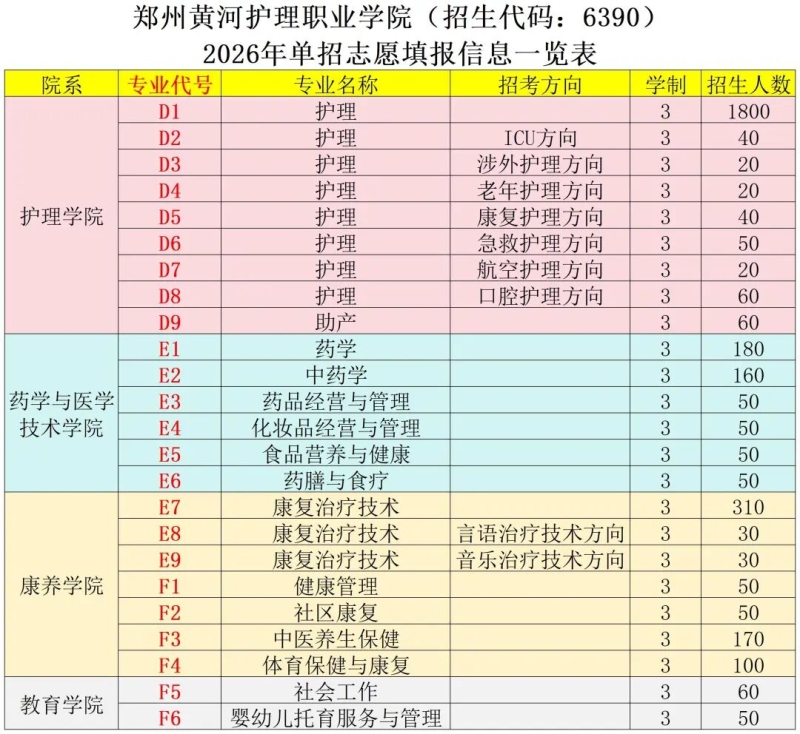 郑州黄河护理职业学院2026年单招报考指南