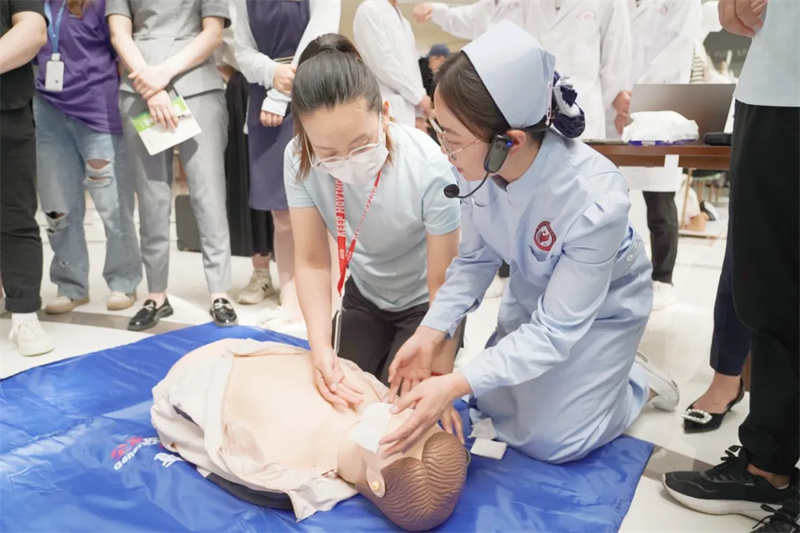 此次培训由许超博老师主讲,她首先讲解了心肺复苏的重要性和基本原理,细致讲解了每一步骤的注意事项和关键点。同时还邀请参与者进行实操演练,并给予指导和纠正。