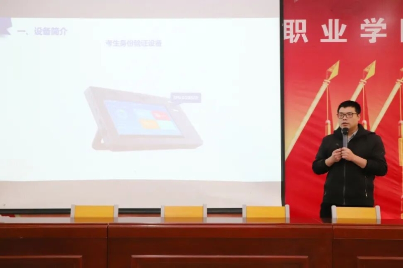 教务处处长李延来结合《河南省2026年全国硕士研究生招生考试考务工作实施细则》要求,从我校考点基本情况、抓好考前演练、严防违纪舞弊、精准考务实施四个方面对考务工作进行培训。他解读了考试安排与流程规范的各项要求,进一步明确监考人员职责,要求严格按照操作规程,全力保障考试工作安全有序进行。随后,网络信息中心王鹏老师对考生身份验证系统的使用进行了专项培训。