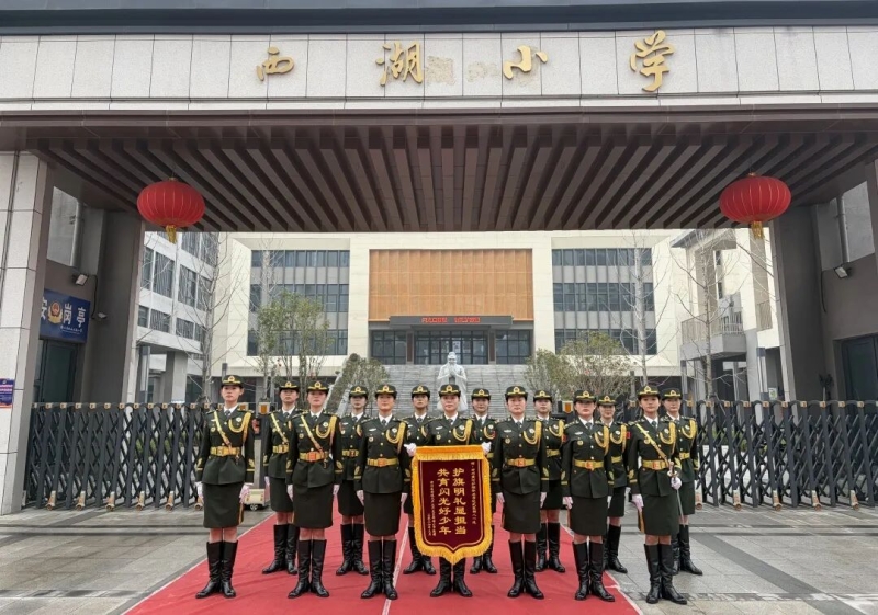 3月5日上午,我校八一连受邀走进郑州高新区西湖小学,为该校开学典礼举行庄严升国旗仪式,传递信仰力量,点燃爱国热情。