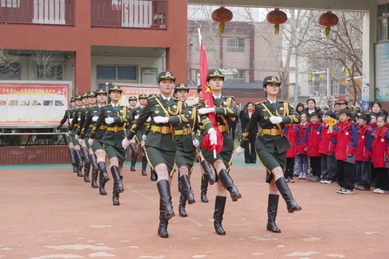 3月13日,我校八一连国旗护卫队走进新密市实验小学,举行庄严的升旗仪式。此次活动是我校八一连走进百所中小学爱国主义教育活动的第四站。