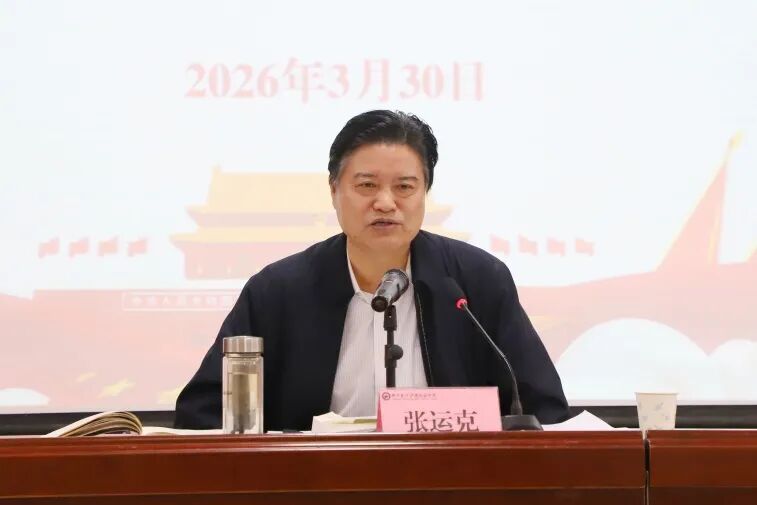 党委书记张运克以《深入学习党的二十届四中全会精神 立足本职工作 全面领会落实<中共中央关于制定国民经济和社会发展第十五个五年规划的建议>》为题,作专题辅导报告。他系统回顾了“十四五”时期我国经济社会发展取得的重大成就,紧扣《“十五五”规划建议》,深刻解读其核心要义与实践要求。他围绕“树立和践行正确政绩观,推动学校高质量发展”提出三点要求:一要提高政治站位,强化责任担当。严格对标中央及省委各项部署要求,切实把上级决策部署落到实处,以高度政治自觉履职尽责;二要强化党建引领,提升履职效能。立足学校发展实际,把党建工作成效转化为党员干部的实干担当与奋进动力,推动各项工作落地落实、提质增效;三要厚植文化底蕴,凝聚奋进合力。营造忠诚担当、干事创业的浓厚氛围,引导全体党员干部立足岗位、担当作为,助力学校教育事业高质量发展。