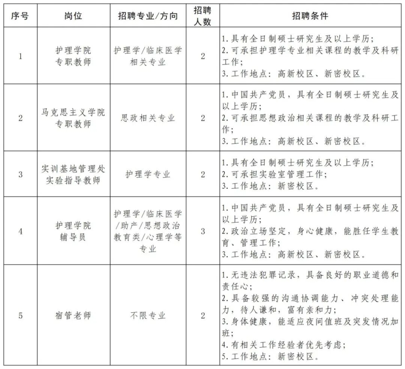 三、招聘岗位及专业要求