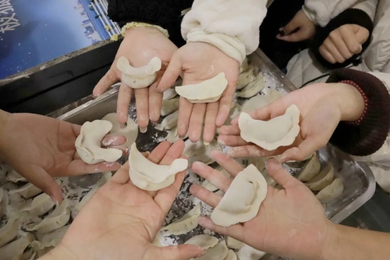 学校精心筹备,为同学们准备了面粉、饺子皮和多种口味的饺子馅。大家热情高涨地投入到包饺子活动中,分工合作,各显身手。有的同学手法娴熟,包的饺子圆润饱满;有的同学则慢慢摸索,虽然包出的饺子形态各异,却也充满了乐趣。大家一边包饺子,一边交流心得,畅谈校园生活趣事,现场气氛温馨和谐。当热气腾腾的饺子端上桌时,同学们的成就感与喜悦感油然而生。大家围坐在一起,品尝着自己的劳动成果,感受着冬日的温暖与集体的情谊。